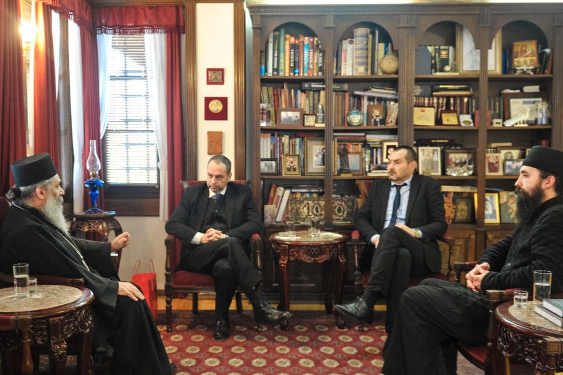 Високиот гостин, од своја страна му честиташе на Старецот за хиротонијата во епископ и му се заблагодари за топлиот пречек, посакувајќи му понатамошно благоуспевање во неговата пастирска дејност.