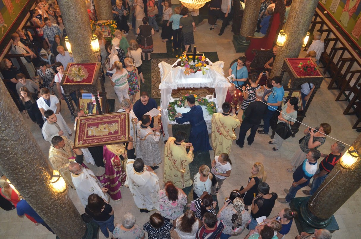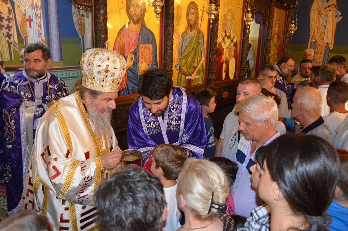 Црквата „Успение на Пресвета Богородица“ била претесна за да ги прими сите верници за чествувањето на Успението на Пресвета Богородица во Велес, седиштето на Повардарската Епархија, каде Митрополитиот г. Агатангел служел вечерна и утринска литургија за Празникот.