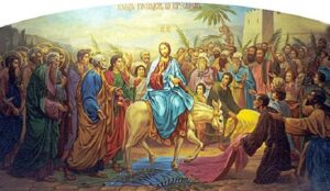 На тој ден, Исус Христос, придружуван од своите ученици и мноштво народ, тргнал од Витинија за Ерусалим. Кога стигнал Исус до подножјето на маслиновата гора испратил двајца свои ученици во Витфагија да му донесат Осле (магаре). Учениците му донеле, ги ставиле на магарето своите облеки врз кои седнал Исус и така влегол во Ерусалим, поздравен од мноштво народ. Според толкувачите на Светото писмо, Исус влегол во Ерусалим качен на магаре затоа што кај источните народи магарето било симбол на мирот, наспроти коњите што служеле за водење војни. Магарето мирно му служело на човекот како што Исус му служел на народот. Пречекувајќи го Исус, воодушевениот народ со цвеќе, но и со својата облека го постилал патот и пеел: „Осана на синот Давидов. Благословен е оној кој доаѓа во името Господово. Осана на вистините“.