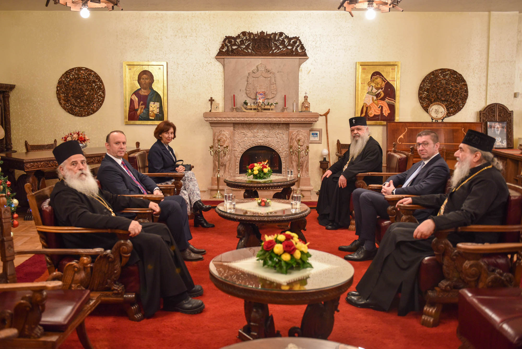 Претседателката Гордана Силјановска Давкова, Спикерот Африм Гаши и Премиерот Христијан Мицкоски беа гости на именденскиот и божикен ручек кај Поглаварот на МПЦ– Охридска Архиепископија г.г. Стефан.