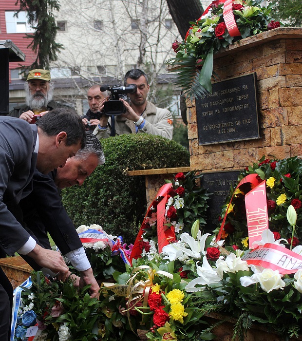 Претставници од Владата, Собранието на Република Македонија, град Скопје, Амбасадор на Израел во Република Македонија, Комисија за односи со верските заедници, дипломатски кор, политички партии и невладини организации, членови на еврејска заедница, Фонд на холокаустот на Евреите од Македонија положија цвеќе пред на местото на привремениот логор – Монополот и на Еврејските и партизанските гробишта во Бутел.