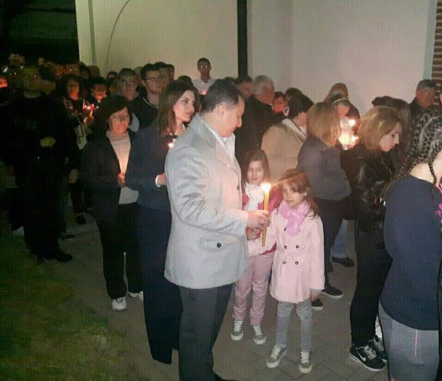ВераМПЦ-ОА Груевски за Велигден во црква во Радишани Date: 01/05/2016 Share post: FacebookTwitterPinterestWhatsApp Претседателот на ВМРО-ДПМНЕ Никола Груевски и неговото семејство синоќа присуствуваа на вечерна литургија во црквата „Свети Наум Охридски“ во скопско Радишани, каде заедно со бројните верници го дочекаа Велигден. Previous articleХристос воскресна – славете Го!Next articleДимитриев за Велигден во Пробиштип LEAVE A REPLY Cancel reply Comment: Please enter your comment! Name:* Please enter your name here Email:* You have entered an incorrect email address! Please enter your email address here Website: Save my name, email, and website in this browser for the next time I comment. Денеска е Св. Тимотеј Editor - 23/06/2016 Празник на појасот на Пресвета Богородица Празници Светите Александар, Јован и Павле, патријарси Цариградски Празници Отсекување на главата на Свети Јован Крстител Празници Од разбојник до светител Празници Денеска е преподобен Пимен Велики Празници