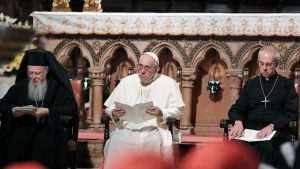 Папата Франциско ја предводи Римокатоличката црква, која има 1,3 милијарди членови, Патријархот Вартоломеј е духовен водач на православните христијани, од кои има околу 220 милиони низ целиот свет, а Велби е постар епископ на светската англиканска заедница, која има околу 85 милиони членови.