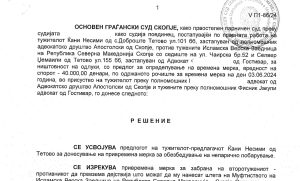 -Се изрекува привремена мерка за забрана на второтужениот – противникот да презема дејствија што можат да му нанесат штета на Муфтиството на ИВЗ на РСМ, организациона единица Муфтство Тетово на ИВЗ на РСМ. Се задолжува Цр на РСМ, по службена должност да ја спроведе одлуката за издавање на привремена мерка во Регистерот на верски заедници и религиозни групи, а се задолжува првотужениот да трпи промени во делот на подружницата Организацџиона единица Мифтиство Тетово на ИВЗ на РСМ во ЦР на РСМ. Ова привремена мњерка трае до правосилно завршување на постапката по овој предмет, стои во решението од судот.