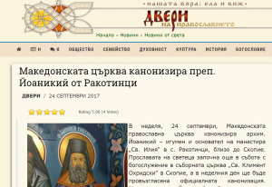 Бугарските медиуми ја пренесуваат веста за канонизацијата на Светиот Јоаникиј Ракотински, што денеска во Скопје ја изврши Македонската Православна Црква.