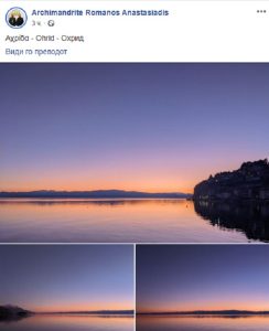 Архимандритот на Вселенската патријаршија од црквата на Крит, Роман Анастасијадис, на својот фејсзбик профил утрово сподели три фотографии од охридското езеро, а во наслов пишува Охрид, на македонски, англиски и на грчки јазик.