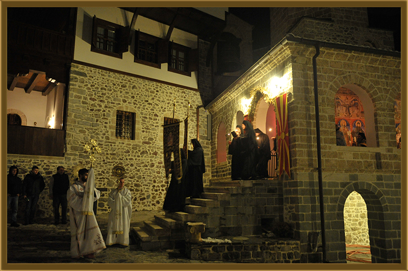 Возљубени верници, браќа и сестри, добро ни дојдовте вечерва во нашата Света Обител, за да се помолиме заедно на ова карактеристично за нас бдение во навечерието на големиот Господов празник, Богојавление. Особено им се заблагодарувам и им посакувам голем Божји благослов на кумовите на крстот од околните села! Јас навистина усрдно се молам, оваа прекрасна и исклучително значајна традицијата со кумувањето на крстот никогаш да не згасне; но, напротив, Христијаните од реканскиов крај да станат уште посилни во верата, така што да не дозволат овие села некогаш да бидат избришани од споменот на нашата христијанска историја. Зашто, овој Манастир, заедно со жителите на околните села, придонеле несомнено многу за духовното издигнување на нашиот народ. Благодарение токму на нив, и пред сè, на монасите будителите – кои, се разбира, во најголем дел потекнувале од овие села – ние ја имаме и денес се гордееме со т.н. Преродба од 19 век, кога славјаномакедонскиот народ доживеал потполна црковна и народна еманципација.