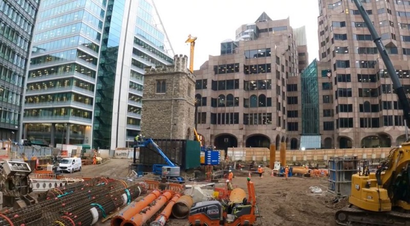 Имено, на улицата Фенчерч има големо градилиште од 5.574 квадратни метри, како дел од реконструкцијата на зградата, а пред неколку дена беа отстранети повеќе од 125.000 тони земја од под кулата.