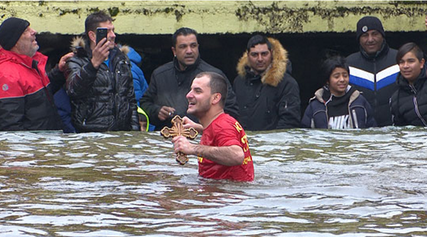 Мики Пецов прв стигна до крстот во Кочанска река што беше положен денеска по повод Водици.