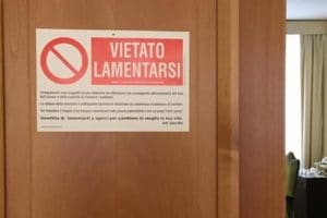 На италијански јазик и букви во црвено-сина боја пишува дека „прекршителите страдаат од синдром на постојано чувство на жртва како и од недостиг од хумор и способност за решавање на проблеми“.