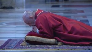 Папата Франциск легна пред олтарот на Велики петок во празната базилика