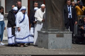 Папата доби неколку рачно изработени икони од граѓаните по што и тој врачи подарок за сестринството.Папата Франциск од спомен куќата на Мајка Тереза замина со познатиот Папа Мобил. Поглаварот на Католичката Црква на 4 септември 2016 во Ватикан ја прогласи Мајка Тереза за светица во католичкиот свет, откако црквата официјално утврдила дела има изведено и второ чудо во својот мисионерски живот.