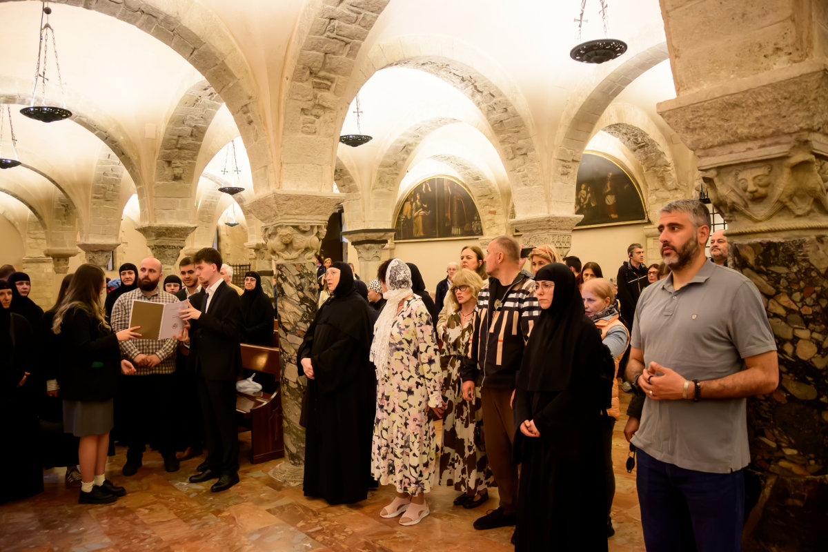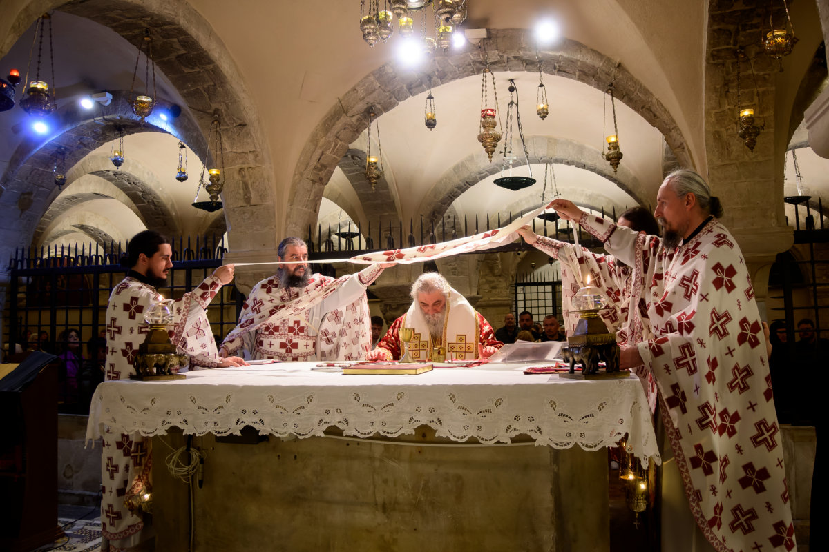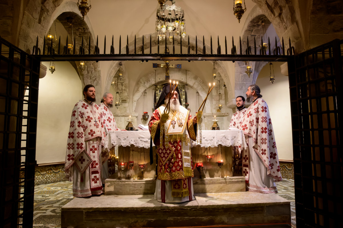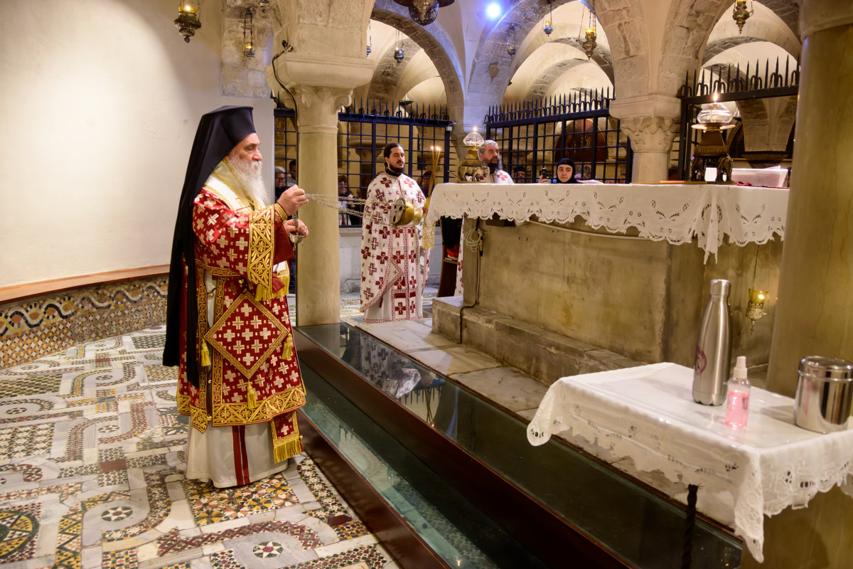 -Во подземните бедра на древната барска базилика, во мистичната полутемнина на криптата, каде што воздухот е проткаен со благоуханието на светите мошти и со молитвените воздишки на неброени столетија, Преосвештениот Антаниски ја принесе бескрвната Жртва за живот на светот, над самиот чесен гроб на Светителот. Со Старецот сослужуваа неговите браќа свештенослужители, отците Доситеј, Кирил, Анатолиј и Ефросиниј. Богослужбата беше збогатена со умилителното и благодатно пеење на дел од псалтите од хорот „Митрополит Козма Пречистански“ од Кичево, како и на нашите студенти по православна теологија при Универзитетот во Атина. А меѓу нив, заедно со сестрите монахињи и со многубројните притекнати верници, како невидлив, но жив и присутен домаќин, соучесник, сослужител и сомолитвеник беше и самиот Чудотворец – оној кого Црквата со возвишен глас го воспева како „правило на верата и образ на кротоста“, како брз застапник и топол молитвеник пред Престолот на Пресветата Троица, велат од Бигорски.