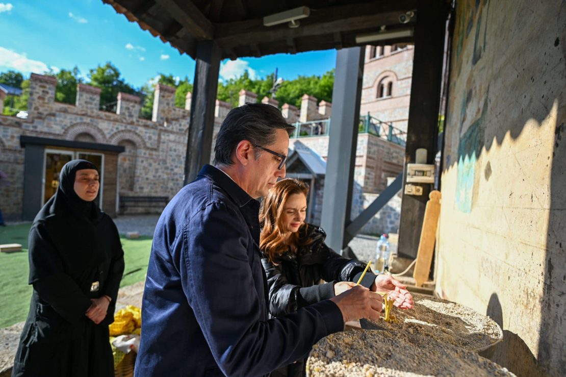 Пенадровски со својата сопруга запалиле свеќи, се поклониле на светителите и ги разгледале убавините на Рајчинскиот манастоир, кој последниот период добива нов лик.
