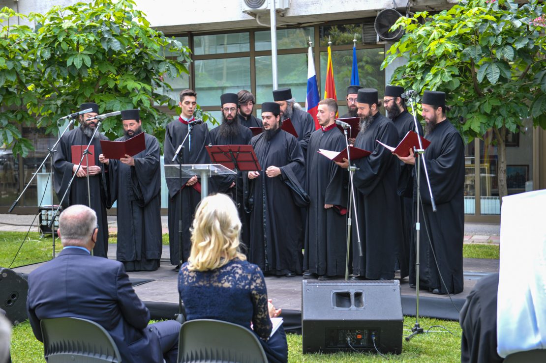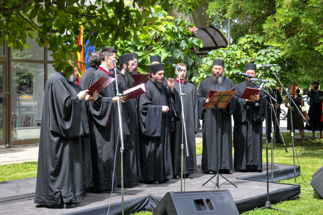 На покана на главните организатори, словачкиот амбасадор г. Хенрик Маркуш и г. Стојан Лекоски, а со благослов на игуменот, Неговото Преосвештенство г. Партениј, на настанот посебен украс му даде настапот на хорот на Бигорскиот Манастир, кој изведе неколку црковни песнопенија: тропарот на Христовото Воскресение, тропарот на Свети Кирил Философ, тропарот на Светите Кирил и Методиј, стихира посветена на Светите Браќа, „Всјакое дихание да хвалит Господа“.