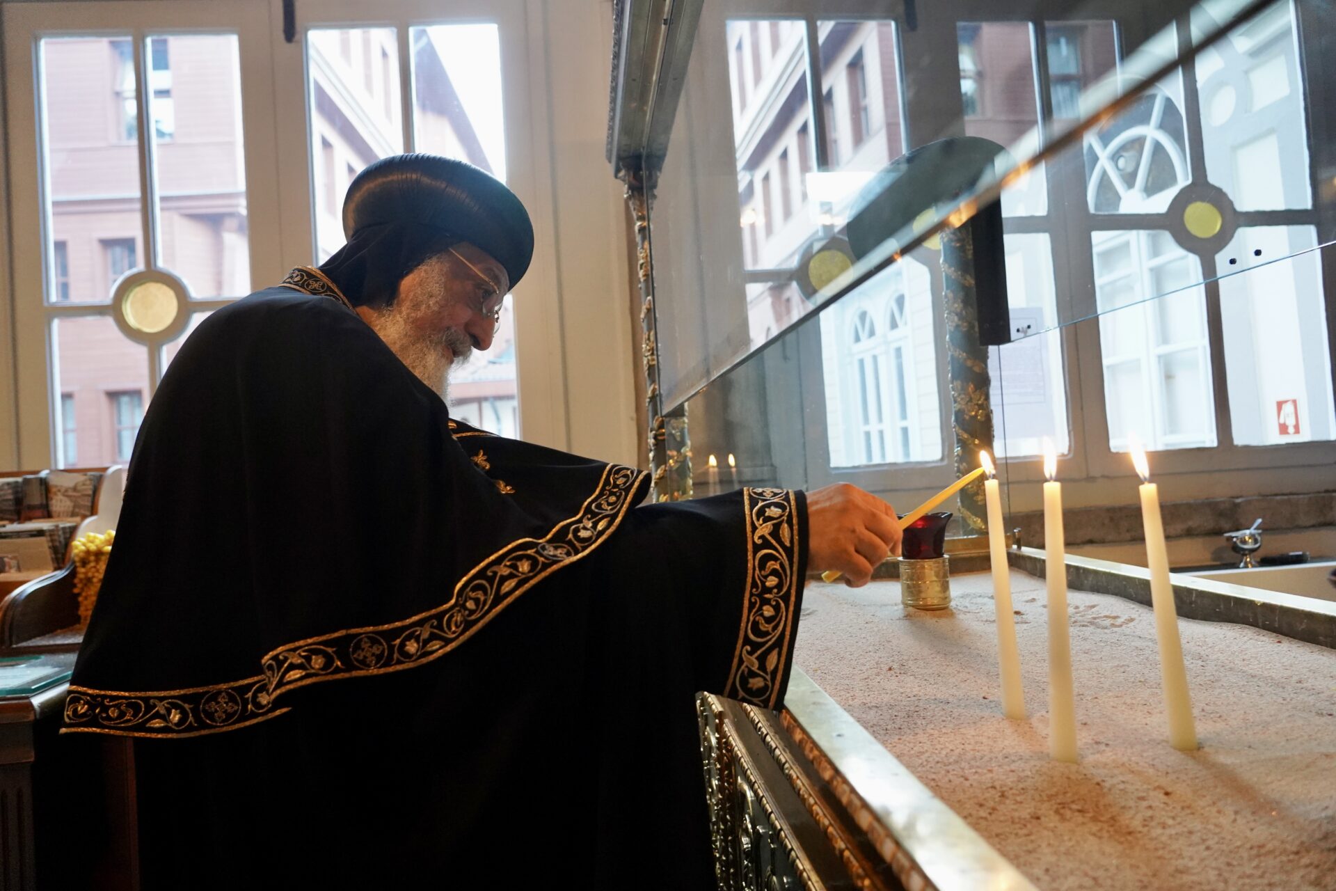 Тавадро II е придружуван од митрополитот Томас од Кусија и Мир, митрополитот Даниел од Маади, Басатеен и Дар Ел Салам, епископот Ангелос, д-р Ваел Бадави, амбасадорот на Египет во Турција, Хатим Елaлфи, генерален конзул во Константинопол, како и од свештени и световни соработници.