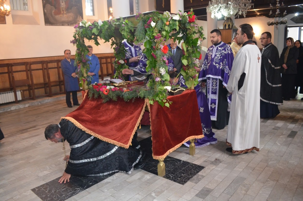 На Велики Петок утрото, кога Православна Црква го чествува споменот на погребението на Христос, во храмот „Св. Спас“ во Велес, Митрополитот Агатангел во сослужение со клирици од Велес, ги отслужи Царските Часови и Вечерната богослужба, на која беше изнесена плаштаницата среде храмот.