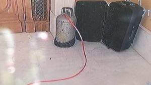 Според медиумите, непознато лице, снимено од безбедносните камери, ја прескокнало оградата и пред влезот оставило куфер и голема плинска боца со црево на кое имало остатоци од оган, јави дописничката на МИА од Атина.