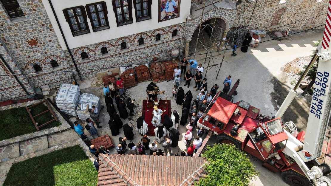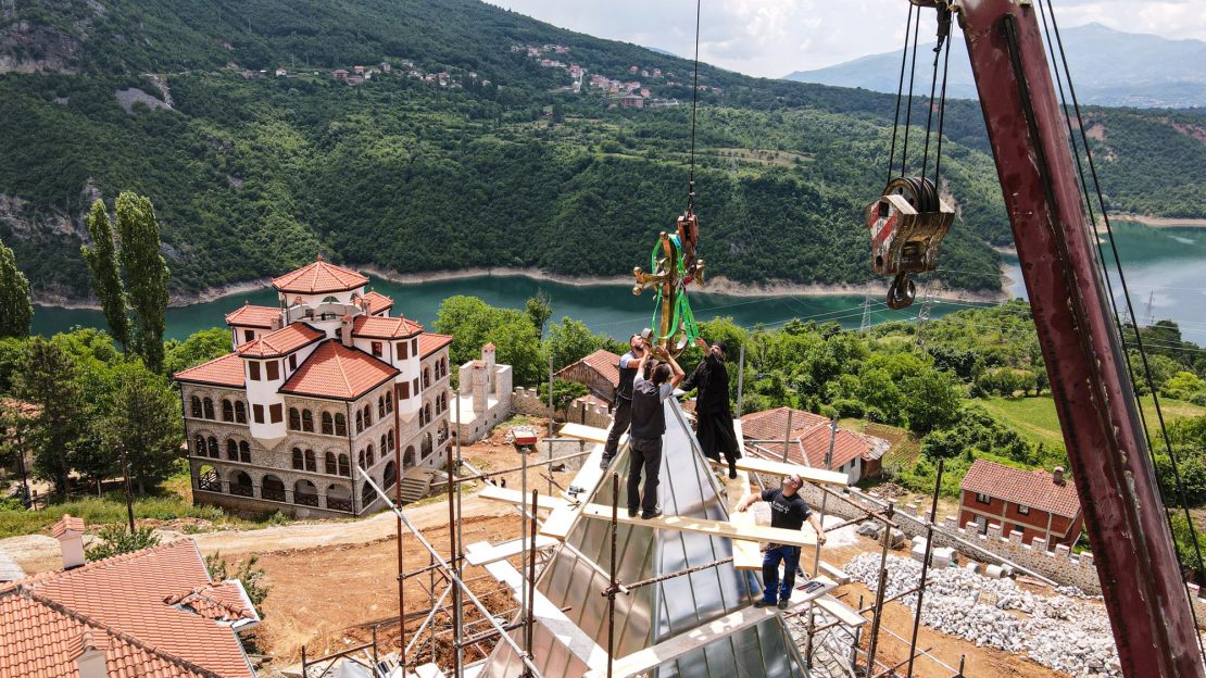 Манастирот Свети Ѓорги во Рајчица од деска го краси нов крст, поставен на манастирската камбанарија.
