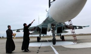 Руските свештеници често можеле да се видат на фотографии од подморници, балистички ракети, вселенски ракети на Сојуз и друга воена опрема додека ја прскаат со света водичка и ги благословуваат.