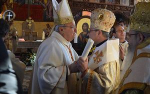 На почитуваниот брат Киро Стојанов, досегашен Апостолски егзарх на Македонија, првиот избран епархиски епископ на Струмичко-скопската епархија Успение на Пресвета Богородица, поздрав и апостолски благослов! Уважувајќи го примерот на мајчината љубов на Мајка Божја, според која сите ние треба да учествуваме во апостолското послание на Црквата (сп. Lumen gentium бр. 65) со оваа наша апостолска грижа со задоволство преземаме тоа што е примерно во служењето за доброто на Црквата и настојуваме да воспоставиме она што поттикнува напредок за Христовите верници. Поради тоа, грижливо одмерувајќи го она што би било добро за паствата на Струмичко скопската епархија Успение на Пресвета Богородица, која на денешен ден е воздигната од положајот на егзархатот според Конституцијата Dominum magnificat, итно ставаме Пастир кој ќе се грижи за духовниот напредок на оваа заедница. Затоа, не сметаме ништо поприкладно туку да на таа служба те именуиваме тебе кој веќе покажа грижа за духовните потреби за верниците од византиски обред во Македонија и се покажа примерен за извршување на таа задача. Следствено на тоа, уважувајќи го предлогот на нашиот почитуван брат Префект на Конгрегацијата на Источните цркви и Меѓународната епископска конференција св. Кирил и Методиј, те разрешуваме од службата Апостолски егзарх и те назначуваме за прв епархиски епископ на неодамна воспоставената Епархија струмичко-скопска Успение на Пресвета Богородица,при тоа доделувајќи ти неопходни права и соодветни обврски, според нормите на Кодексот на каноните на Источните Цркви.