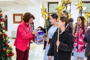 Претседателката денеска традиционално, во претпладневните часови, беше посетена од групи деца и млади од бадниковите поворки. Таа во духот на празникот ги дарувала со бадникови пакетчиња.