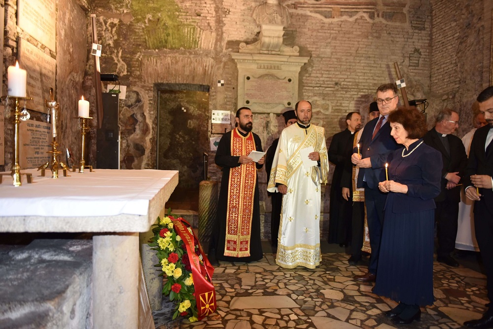 Претседателката Гордана Сиљановска Давкова во рамки на посетата на Светиот Престол, денеска во базиликата „Сан Клементе“ присуствуваше на молебенот во чест на Свети Кирил и се поклони на гробот на сесловенскиот просветител.