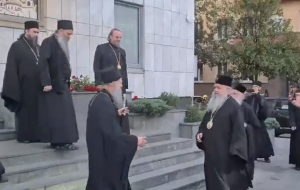 Српскиот патријарх Порфириј, на својата фејсбук страница објави vидео од пречекот нма македонската цркована делегација во Белград.
