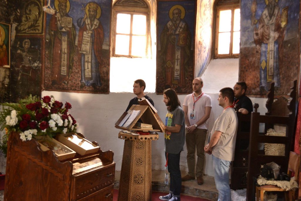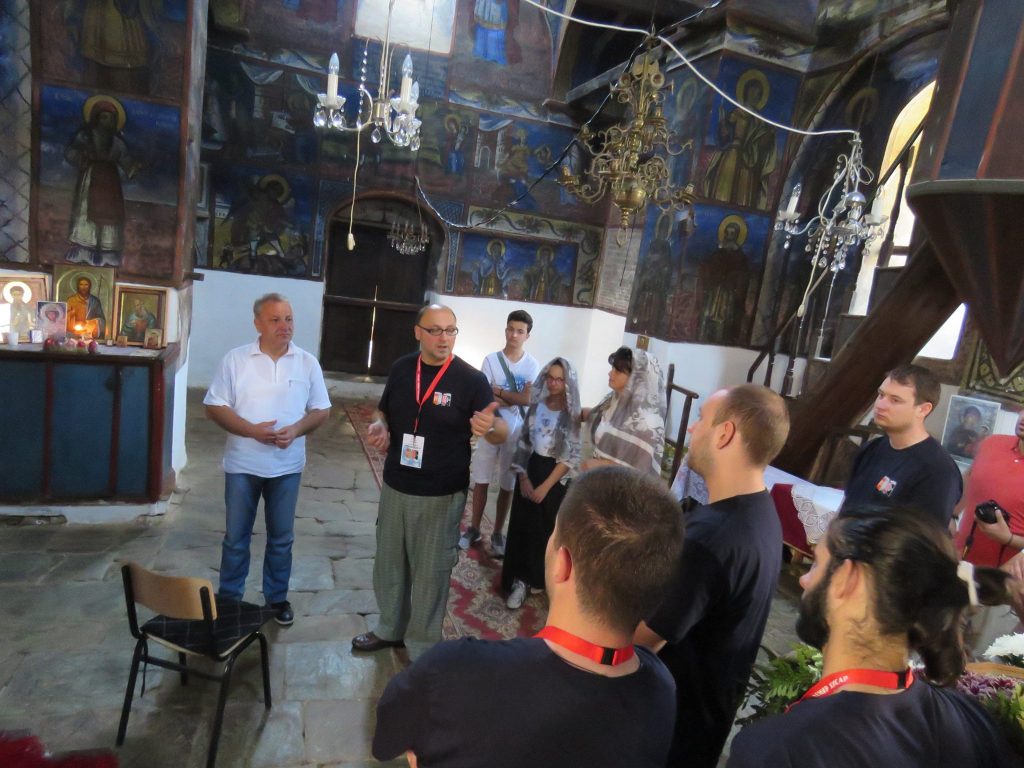 Наредниот ден – 09 јули (недела) пред почетокот на Литургијата, игуменот на манастирот, Неговото преподобие, јеромонахот Серафим ја запозна Теолошката група со големината на служењето на свештеникот за време на Литургијата. По отслужената Божествена литургија и по заедничката трпеза, започна предавањето на проф. д-р Сашо Цветковски, кој ја запозна групата со фрескоживописот на манастирскиот храм „Свети Јован Претеча“. Во оваа прилика во посета на работните групи по теологија и архитектура, кои своите активности ги извршуваа во манастирскиот комплекс, дојде градоначалникот на општина Демир Хисар, г. Љупчо Блажевски, кој од страна на предавачите беше запознаен со активностите на групите. Теолошката група имаше своја задача да ја запознае пошироката јавност со современите агиолошки предизвици и проблеми, како и да ги прошири своите знаења од областите на историјата и историјата на уметноста на многуте стари цркви и манастири, кои се важен и неоткинлив дел од историјата на нашата помесна црква како дел од нејзиното културно наследство. Архитектонската група, како цел на својата работна задача ја имаше манастирската маѓерница, која за прв пат се најде под релевантна стручна опсервација од страна на младите архитекти, предводени од проф. д-р Елизабета Касапова.