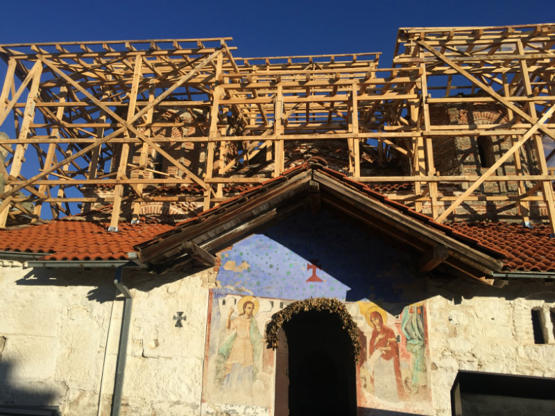 Монахот Калист кој живее во манастирот „Успение на Пресвета Богородица“ – Трескавец им ги пренел информациите за градежните активности околу обновата.