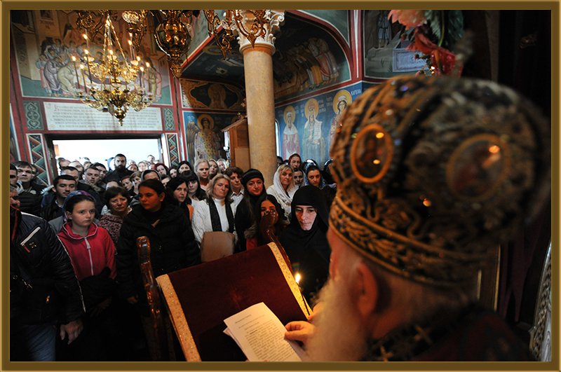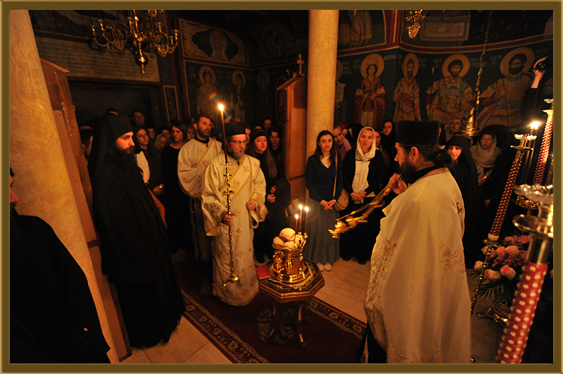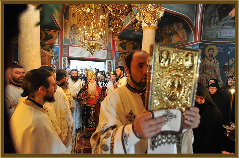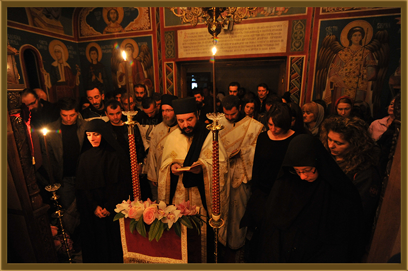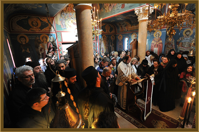 -Затоа е тој толку радосно празнуван од нашата монашка заедница; затоа нашиот Старец, Архимандрит Партениј, со толкава почит го прегрнува во своето срце учењето овој боговдахновен учител, така што параклисот во Рајчица му го посвети токму нему, и на неговите двајца светогорски собраќа и небесни сожители – Св. Јован Кукузел и Св. Нектариј Битолски. И ете, овој параклис вчера и денес повторно беше сведок на едно големо торжество, на една духовнa радост, на еден прекрасен молитвен собир, велат монастите.