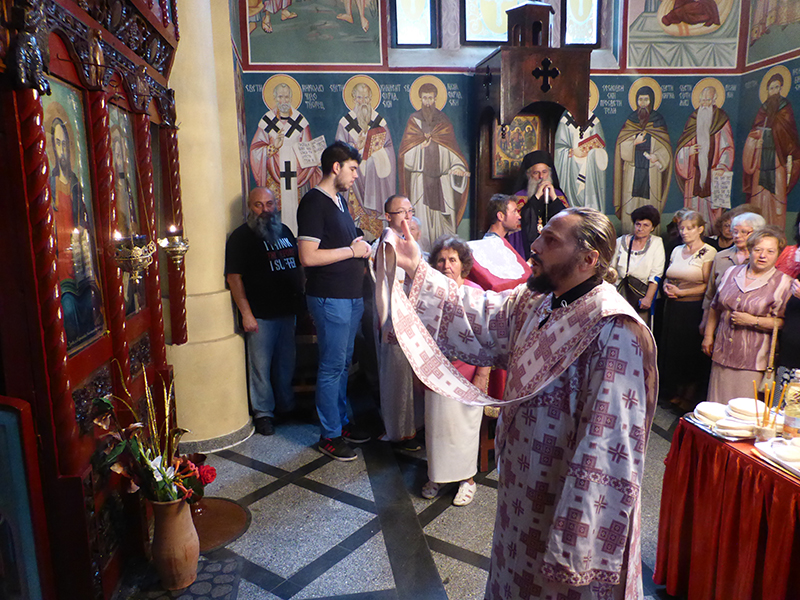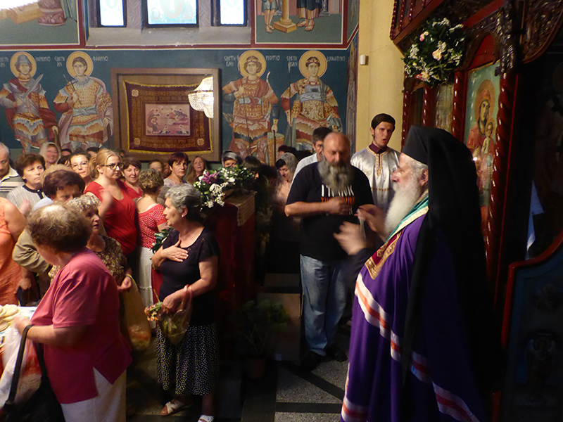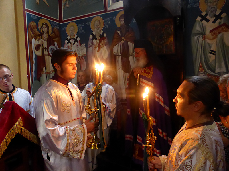 Галерија Вечерна за Архангел Гаврил со владиката Петар Date: 27/07/2016 Share post: FacebookTwitterPinterestWhatsApp Во предвечерието на празникот во спомен на Чудата на Архангелот Гаврил, Митрополитот Преспанско-пелагониски г. Петар служел Вечерна богослужба со петтолебие, во манастирот на Свети Архангел Гаврил, во Довлеџик, Битола. ГАЛЕРИЈА: /фото: ППЕ Previous articleОсветен уште еден крстNext articleЛитургија за Архангел Гаврил во Куманово LEAVE A REPLY Cancel reply Comment: Please enter your comment! Name:* Please enter your name here Email:* You have entered an incorrect email address! Please enter your email address here Website: Save my name, email, and website in this browser for the next time I comment. Денеска е Света Теодосија Editor - 11/06/2016 Празник на појасот на Пресвета Богородица Празници Светите Александар, Јован и Павле, патријарси Цариградски Празници Отсекување на главата на Свети Јован Крстител Празници Од разбојник до светител Празници Денеска е преподобен Пимен Велики Празници