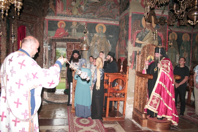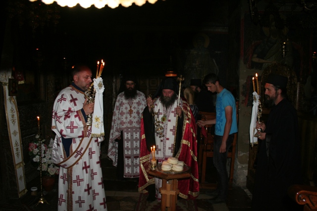 Брегалничкиот митрополит г. Иларион и Игуменот на Лесновскиот манастир Дамаскин синоќа служеле вечерна богослужба за Свети Наум во Манастирот во Лесново.