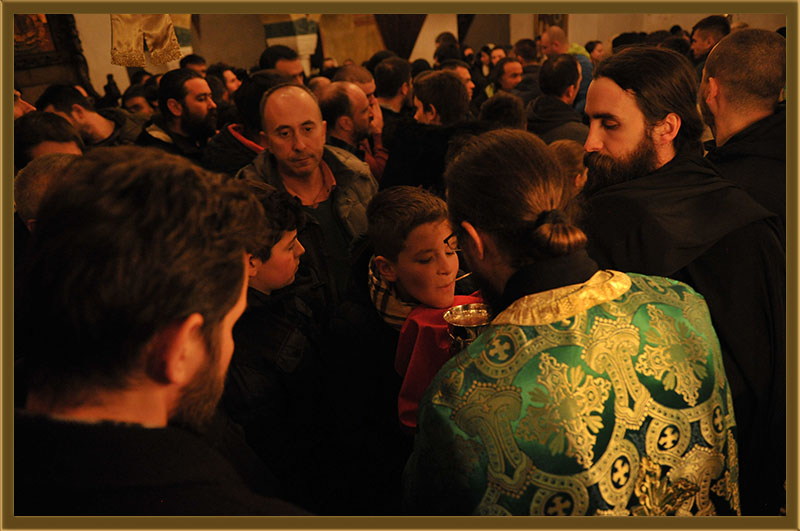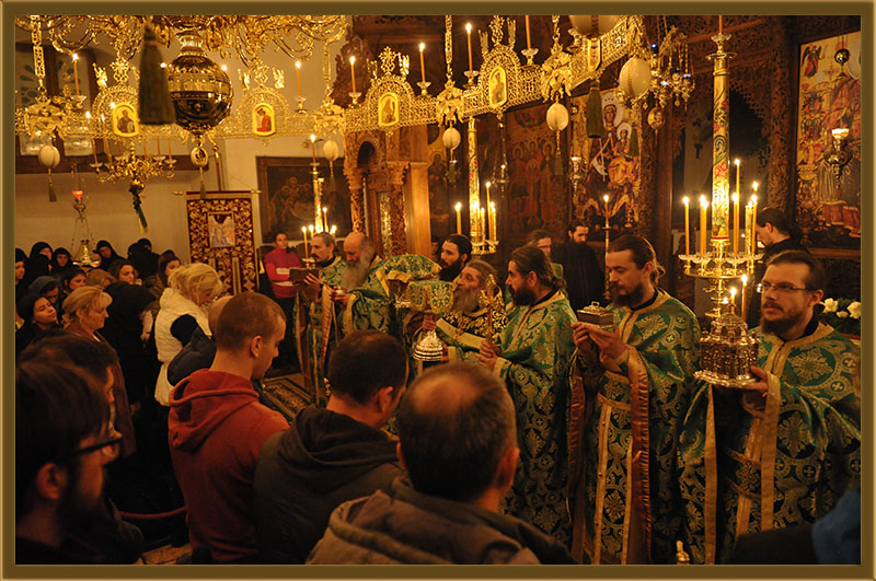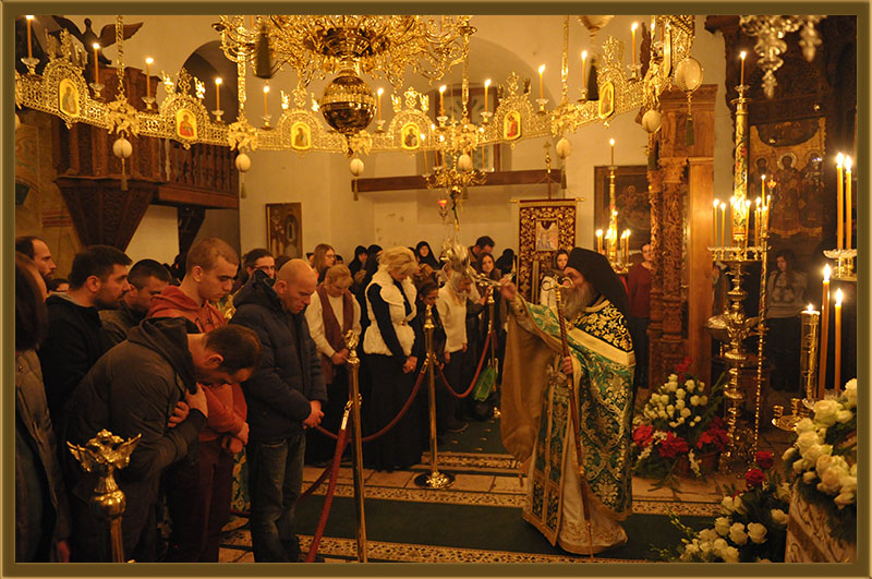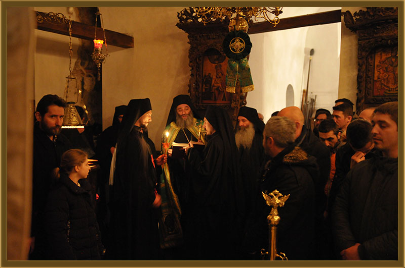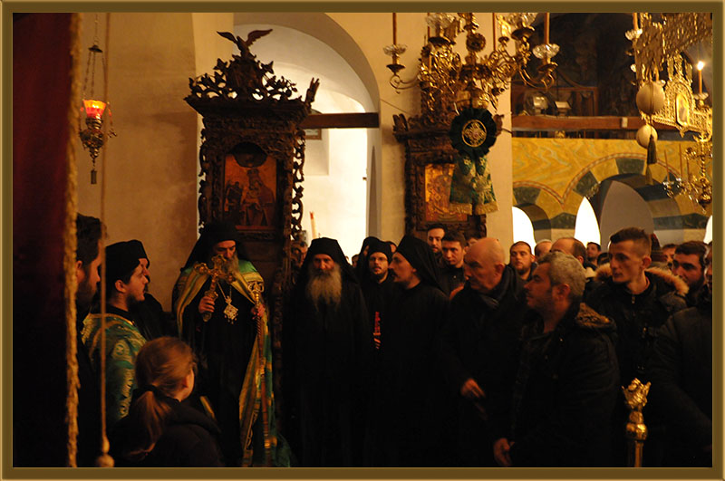 -Се во Бигорската Обител беше во духот на таа радост: и божикно украсениот храм, и снежно разубавениот манастирски двор, и бадниковото навестување на Рождеството, и самото доживување негово на целоноќното богослужение… Тука, со голема радост и благодарност, би ги спомнале посебно озарените лица на членовите од ансамблот „Македонија“ од Скопје, кои предводени од нивните раководители, професорите Владимир Јаневски и Тимко Чичаковски, и покрај силните снежни наноси, пожртвувано допатуваа во Бигорски за да ја збогатат бадниковата вечер со нивниот прекрасен настап, што присутните верници ги остави со солзи во очите. Доволна беше само нивната достоинствена појава – сите облечени во македонски народни носии од мијачкиот крај – за да предизвикаат восхит кај сите; а кога, пак, низ звуците на традиционалните народни инструменти, се запеа „Вечниот Бог“, беше тоа едно вистинско благодарење и славење на премилостивиот наш Господ, велат од Бигорски.
