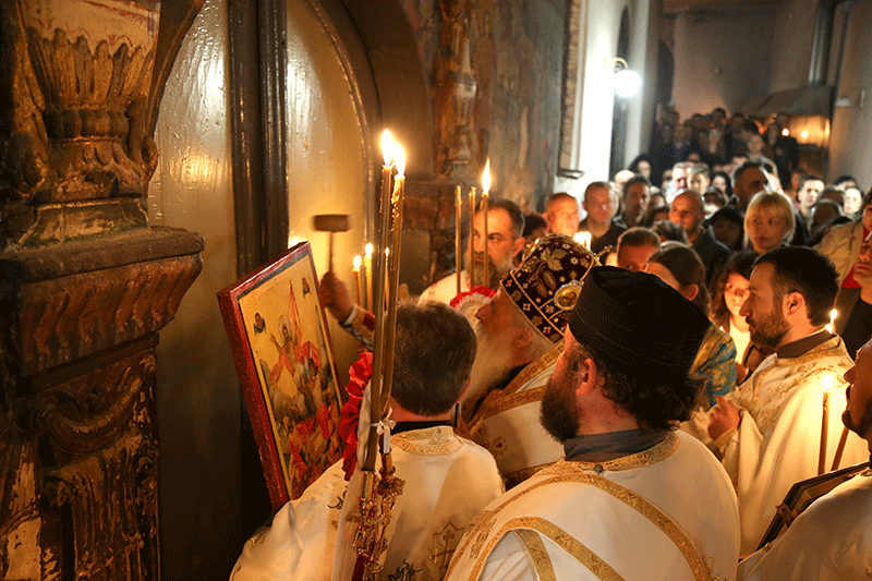 Галерија Велигден во Битола Date: 01/05/2016 Share post: FacebookTwitterPinterestWhatsApp Со масовен опход на Црквата „Св. Димитриј“ вчера беше одбележан Велигден и во Преспанско-пелагонискта Епархија на МПЦ. Веста за Воскресението Христово ја објави, Митрополитот г. Петар Previous articleВИДЕО: Велигден во СветотNext articleДенеска е Свети Атаназиј LEAVE A REPLY Cancel reply Comment: Please enter your comment! Name:* Please enter your name here Email:* You have entered an incorrect email address! Please enter your email address here Website: Save my name, email, and website in this browser for the next time I comment. Католиците го слават Свети Серафин Editor - 12/10/2016 Празник на појасот на Пресвета Богородица Празници Светите Александар, Јован и Павле, патријарси Цариградски Празници Отсекување на главата на Свети Јован Крстител Празници Од разбојник до светител Празници Денеска е преподобен Пимен Велики Празници