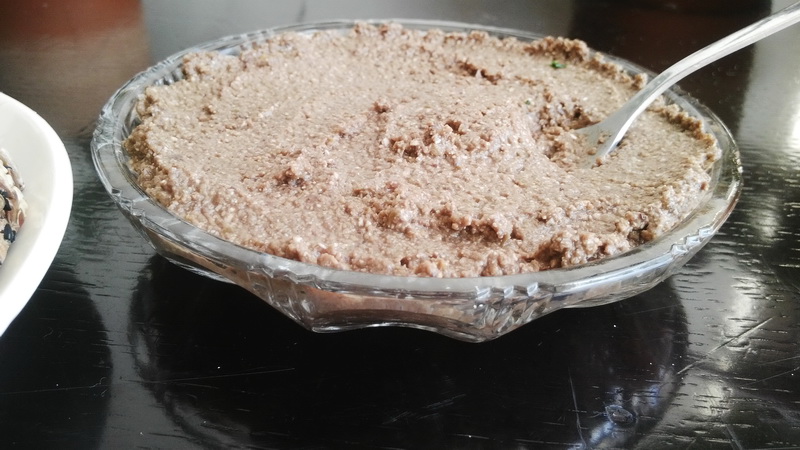 Се ова ставете во блендер и мелете, по потреба (доколку сместа станува сува) додадете многу малку вода за да ја добиете саканата густина.