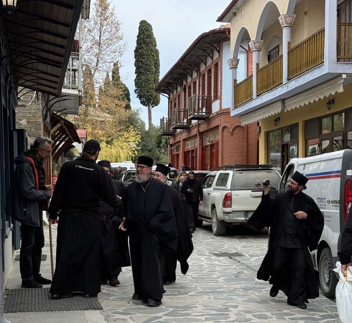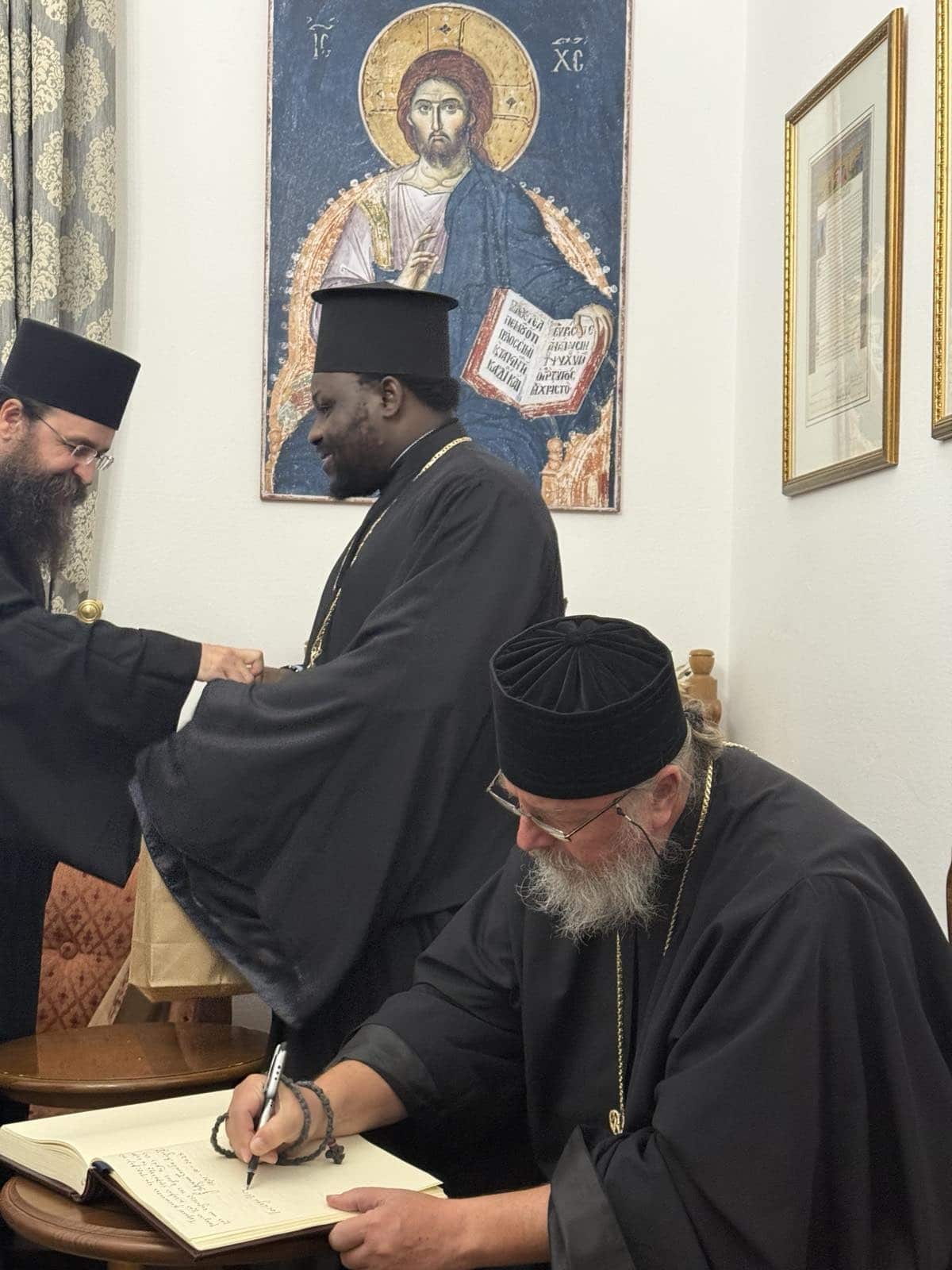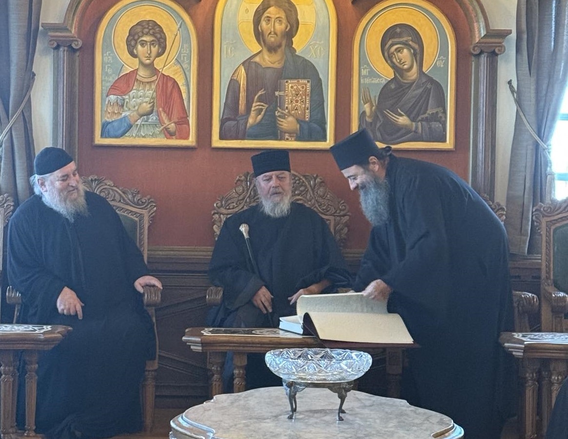 Од фотографиите што ги објави Тивериопол.мк, се гледа дека владиката Наум, заедно со владиката на Вселенската патријаршија, посетиле неколку манастири, служеле литургија и биле пречекани од светогорските манстири.
