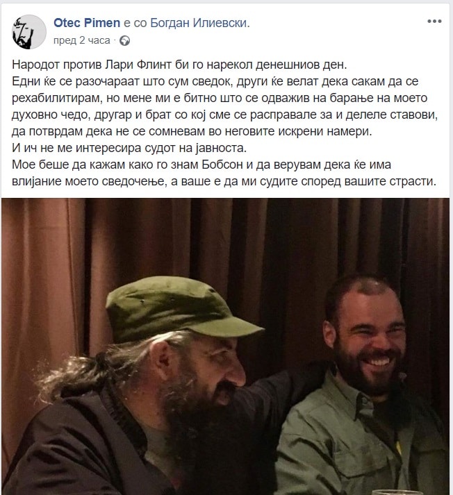 Мое беше да кажам како го знам Бобсон и да верувам дека ќе има влијание моето сведочење, а ваше е да ми судите според вашите страсти,“ напиша Отец Пимен на Фејсбук.