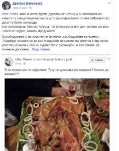 – Е па анима ние се најадовме. Туку со кучињава шо правиме? Кинези да викаме?!?, напиша Отец Пимен на фејсбук. По овој статус, следуваа лавина негативни коментари по социјналните медиуми.