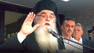 „Во 1953 година нобеловецот Јоргос Сеферис се најде во Кипар и таму виде нешто напишано на ѕид, од што беше трогнат. Тој го напиша следново и тоа треба да биде наш слоган: ‘Ја сакаме Грција, па ако треба и камења ќе јадеме’. И – што сакаме? Ја сакаме Македонија, па ако треба да јадеме и камења!“, порача владиката.