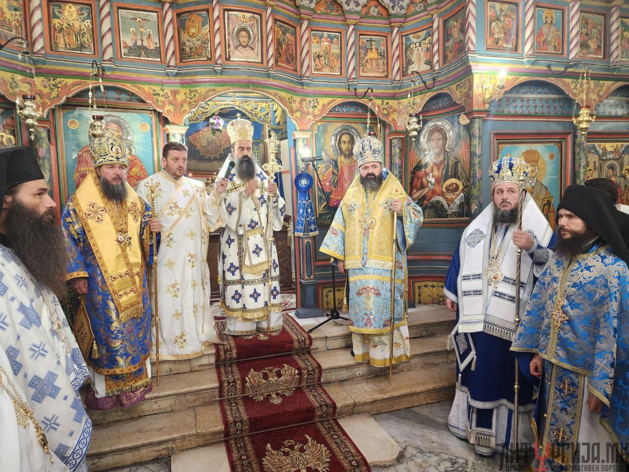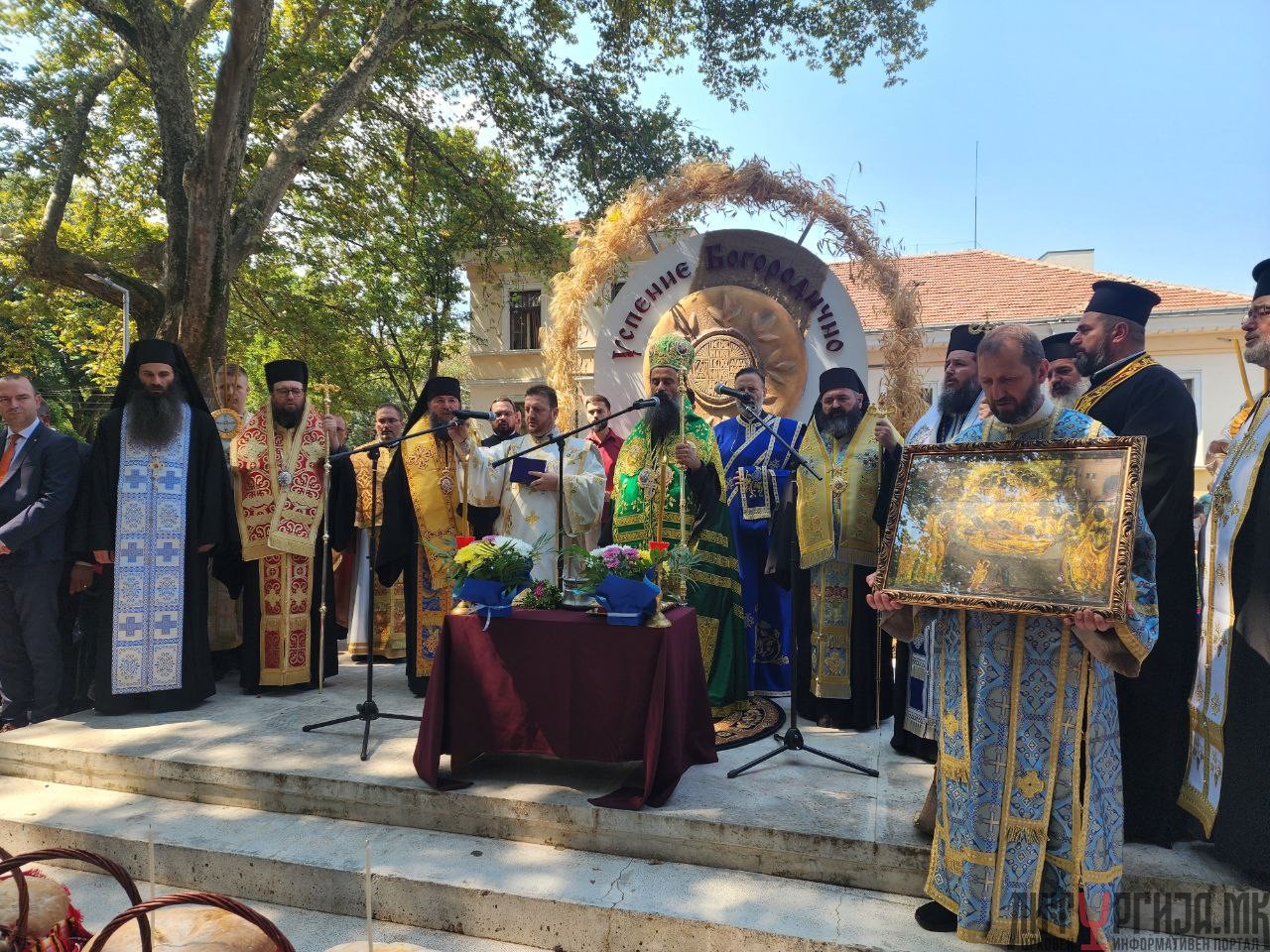 По Лигургијата, на плоштадот Велбужд, Патријархот Даниил изврши торжествен водосвет и осветување на празничните лебови.