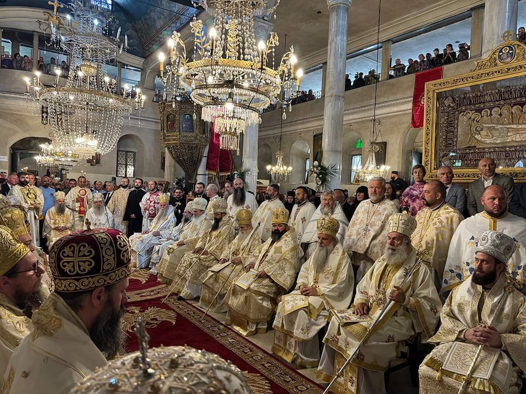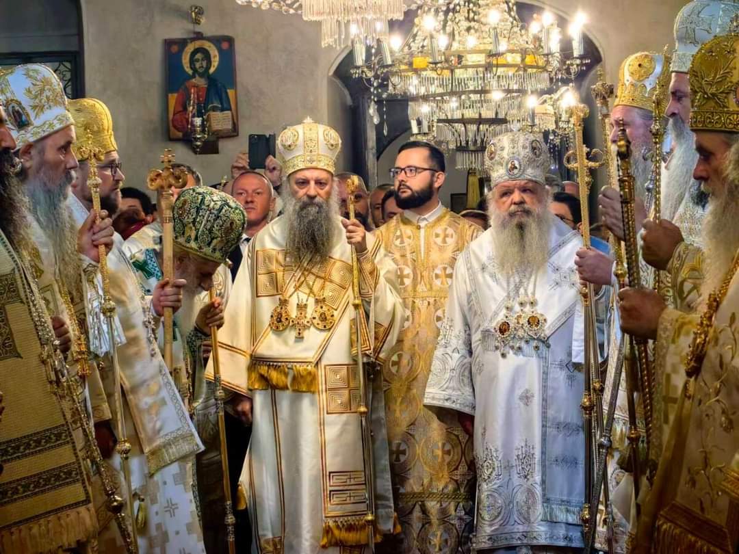 Литургијата ја служеа Архиепископот Стефан и Патријархот Порфириј, а сослужуваа Митрополитот Петар, Митрополитот Јован, Митрополитот Пимен, Митрополитот Јосиф Митрополитот Григориј, епископите Јоаким и Марко, Климент, Јаков, Давид, Никола, како и пензионираниот Митрополит Јосиф од МПЦ-ОА. Од страна на СПЦ сослужуваа Зворничко-тузлански Фотиј, Црногорско-приморски Јоаникиј, Рашко-призренски Теодосиј, Британско-ирски Нектариј, Хвостански Алексеј, Новобрдски Иларион, Топлички Петар. На сослужувањето учествуваше и владика на Црквата на Чешка и Словачка, Михаловско-кошички Георгиј.