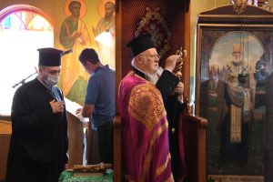 На почетокот на својата беседа, тој говореше за „денешната благословена средба на таткото со своите деца. Зашто ако целиот благочестив руски народ се духовни чеда на Константинопол, тогаш многу повеќе сте вие, кои живеете овде, вие сте наши деца. Зашто одовде рускиот народ го прими Христијанството, просвештението, крштението. Затоа и денес дојдов за да бидам близу до вас, на покана на отец Тимотеј и отец Алексиј, за да се помолиме заедно и да го почестиме споменот на свети Пантелејмон, кој е велик лекар. И денес, кога го поминуваме овој тежок период на пандемијата, потребен ни е свети Пантелејмон и светите Бесребреници, многу повеќе отколку другпат. Го молиме свети Пантелејмон да нè заштитува“.